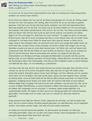 Diese Insel war so groß und es gab an jeder Stelle etwas zu entdecken, dass ich in diesem Text nur ausgewählte Stellen der Insel zeigen konnte. Wenn ihr nun Lust habt, die ganze Insel zu erkunden, dann fragt Serenada einfach nach der Schlummeranschrift DA-9071-7912-7156, um Vanni#3034´s Insel zu besuchen. Solltet ihr danach immer noch nicht genug vom Träumen haben, so schaut doch mal auf unserem Discord Server im Kanal #Schlummercode-Austausch vorbei.